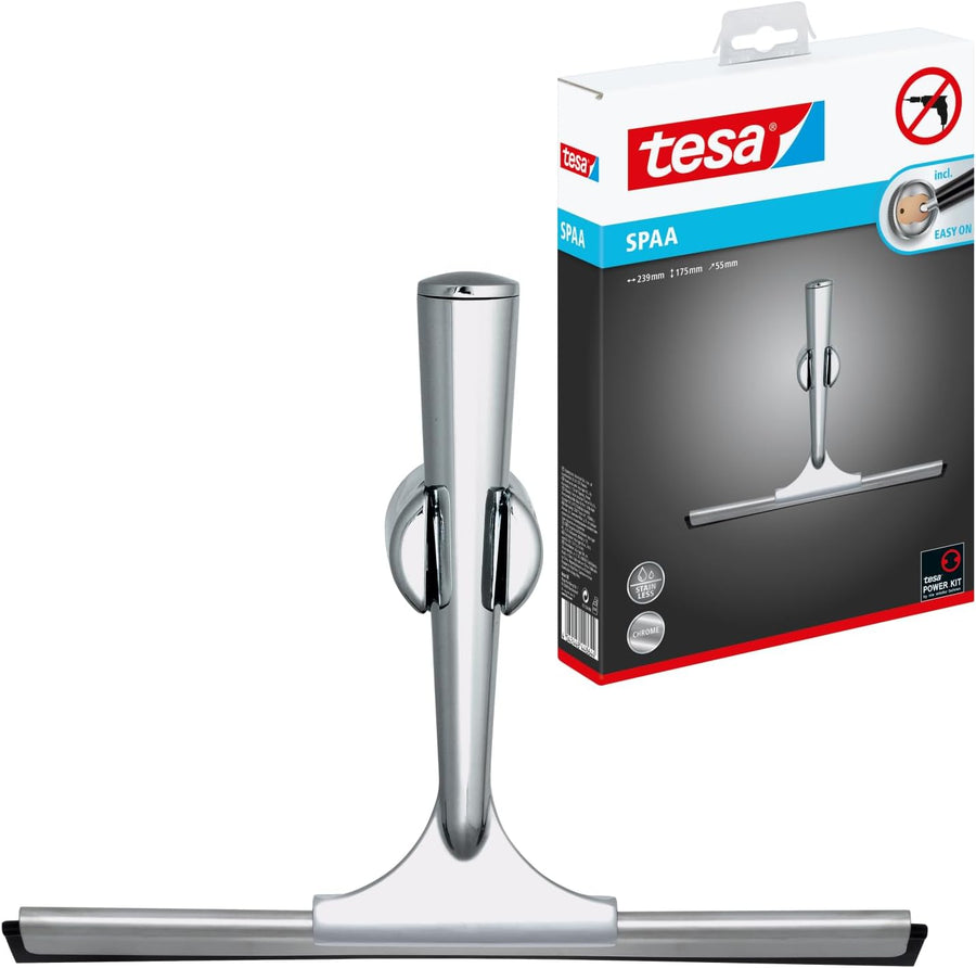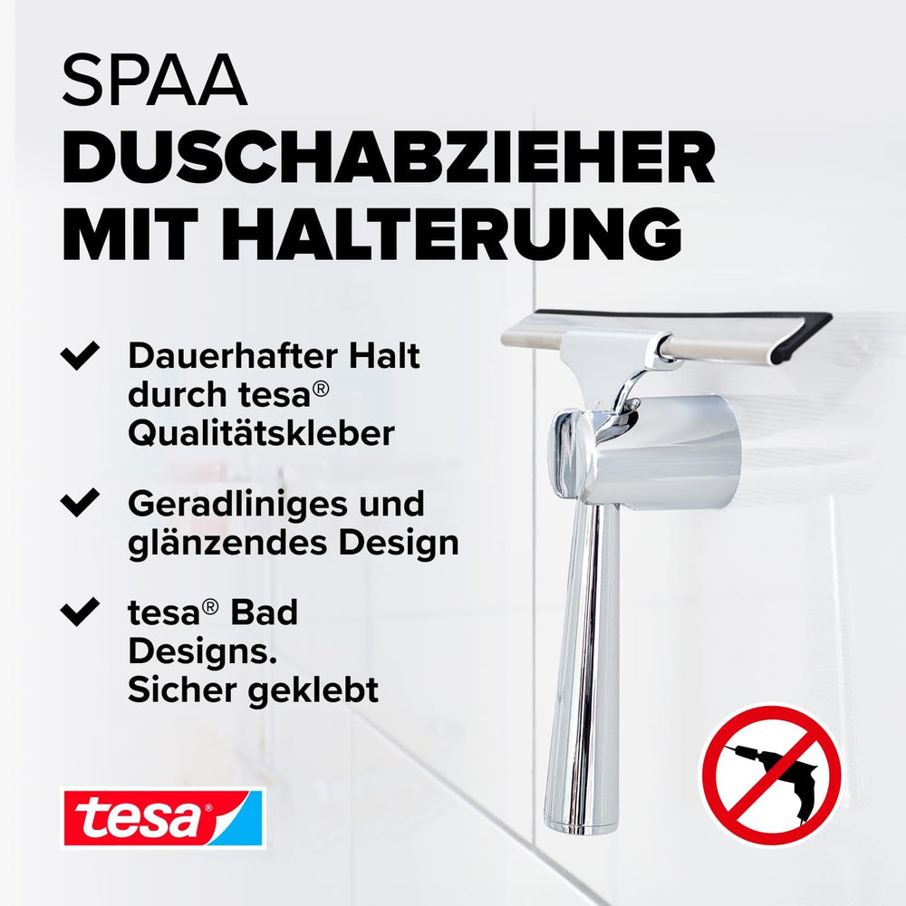 tesa SPAA Duschwischer, verchromt, rostfrei, inkl. Halterung und Klebelösung, weiche Gummilippe, 175