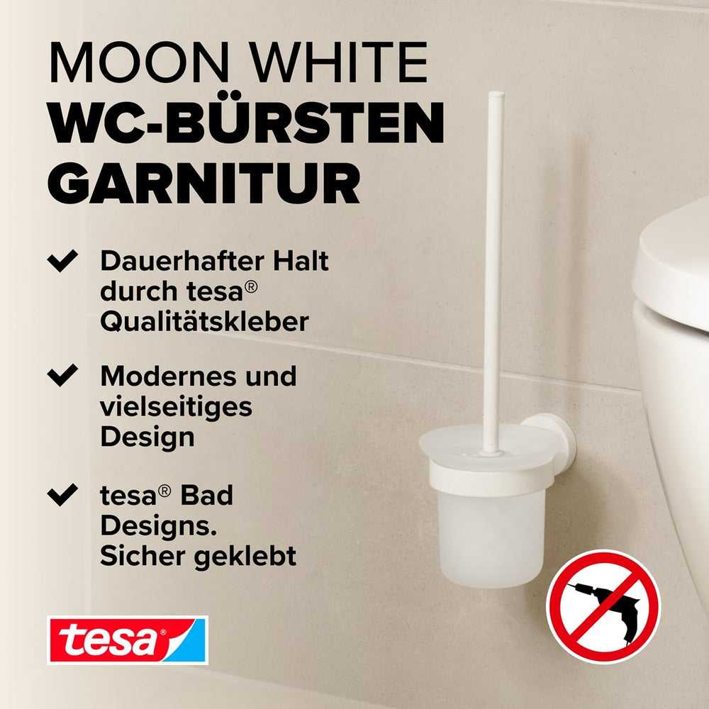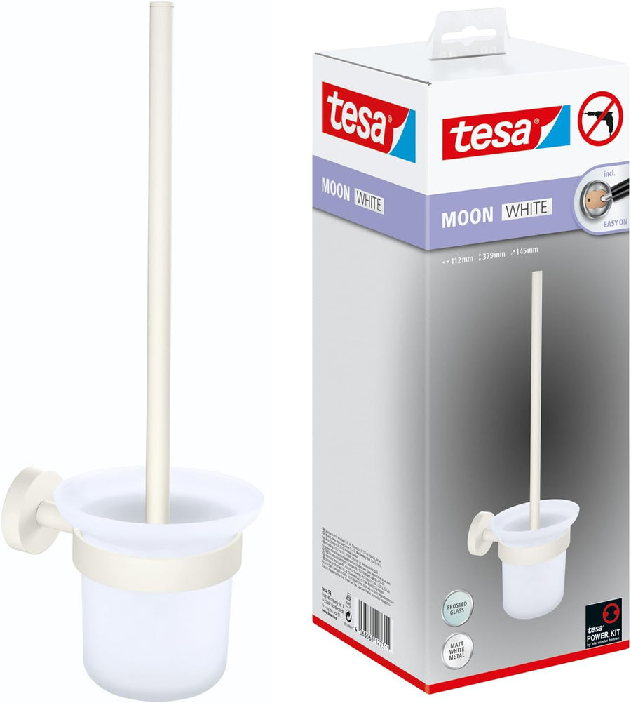 tesa MOON WHITE WC-Garnitur, Set mit Halter & WC-Bürste, matt weiss, satiniertes Glas - für Bäder im