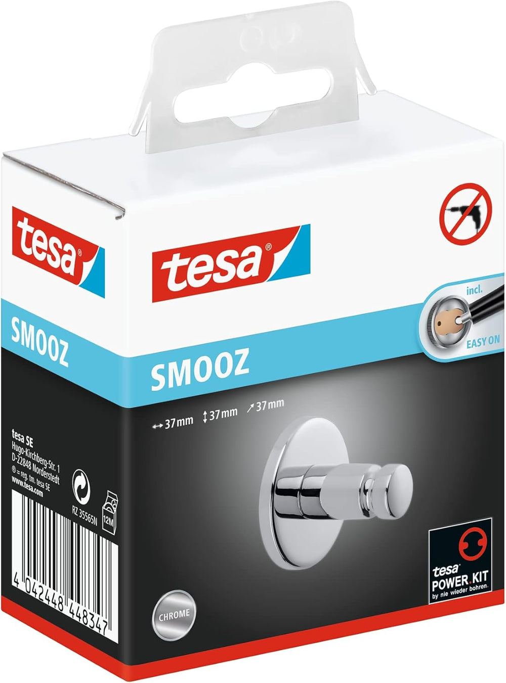 tesa SMOOZ Handtuchhaken, verchromter Edelstahl - Bad-Haken zur Wandbefestigung ohne Bohren, inkl. K
