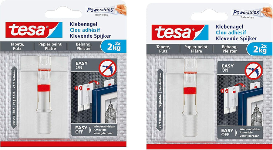 tesa Verstellbarer Klebenagel (für Tapeten und Putz 2 kg, Höhenverstellbarer, selbstklebender Wandna