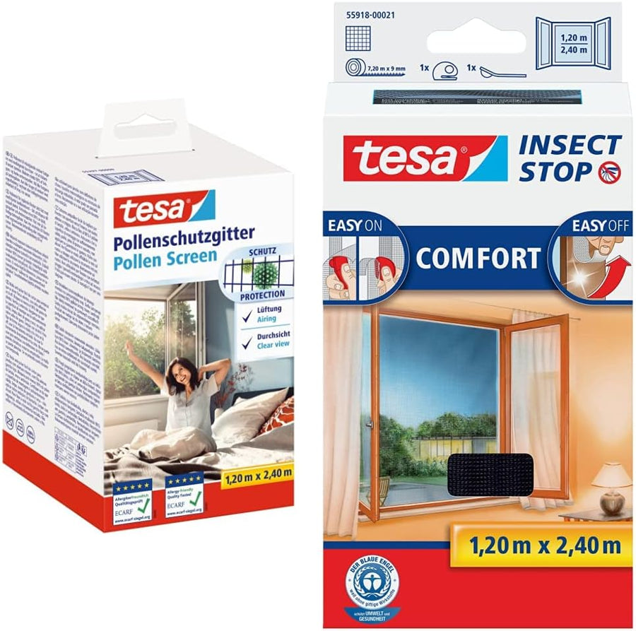 tesa Pollenschutzgitter - zuschneidbarer, transparenter Pollenschutz für Allergiker & Pollenschutzgi