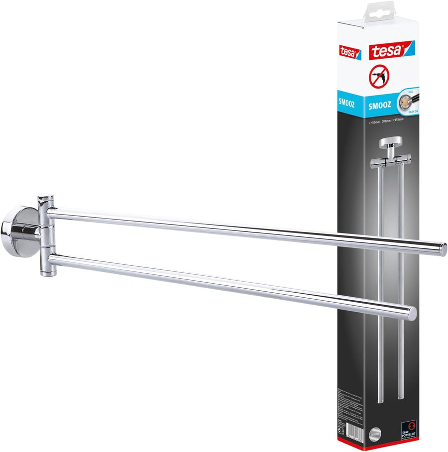 tesa SMOOZ Bad Handtuchhalter, 2-armig und schwenkbar, verchromt - zur Wandbefestigung ohne Bohren,