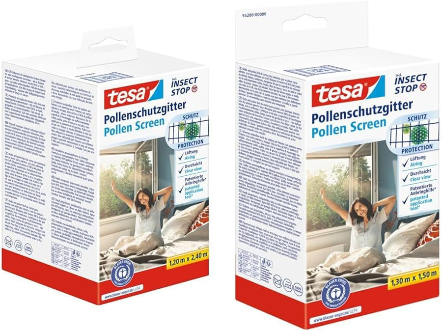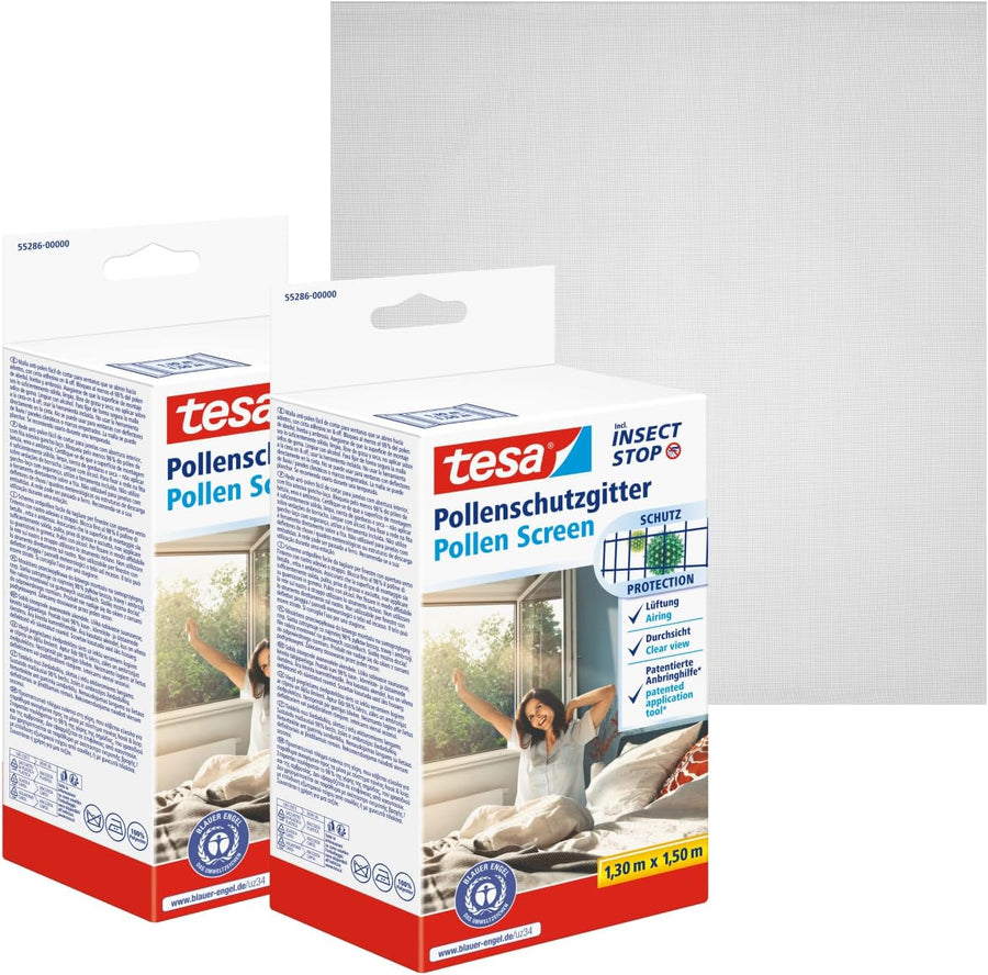 tesa Pollenschutzgitter im 2er Pack- zuschneidbarer, transparenter Pollenschutz für Allergiker - für
