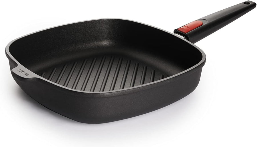 Woll Nowo Titanium Guss-Grillpfanne, viereckig, mit Rillen-Induktiv, 28 x 28 cm, 6,5 cm hoch, mit ab