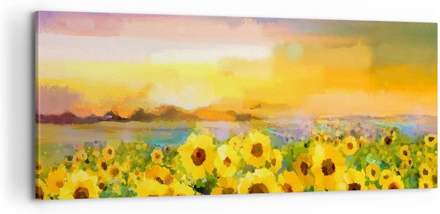 Panorama Bilder auf Leinwand 100x40cm Leinwandbild Sonnenblumen Blume Gross Wanddeko Bild Schlafzimm