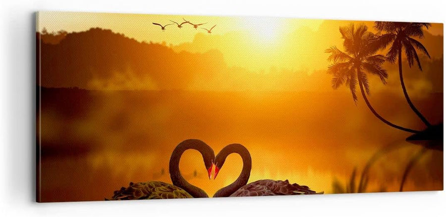 Panorama Bilder auf Leinwand 100x40cm Leinwandbild Schwäne Nacht Liebe Gross Wanddeko Bild Schlafzim