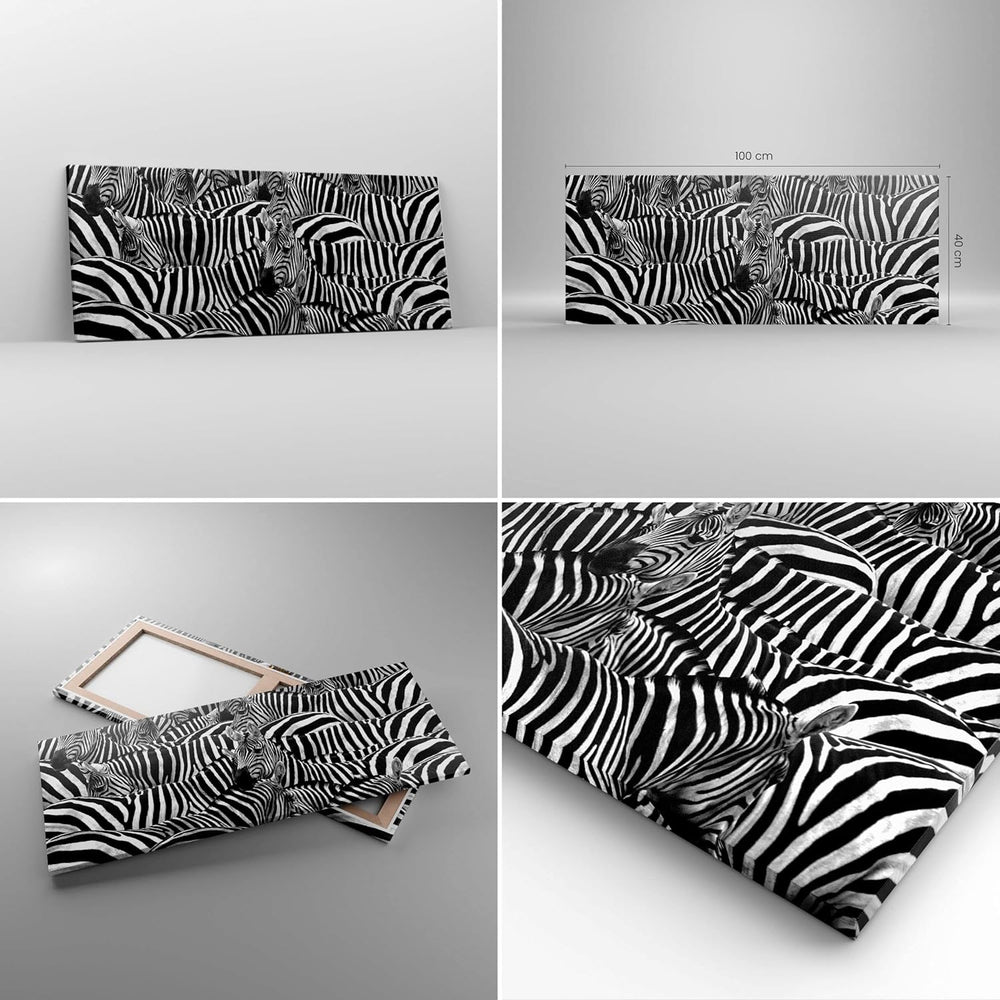Panorama Bilder auf Leinwand 100x40cm Leinwandbild Tiere Zebra Streifen Gross Wanddeko Bild Schlafzi