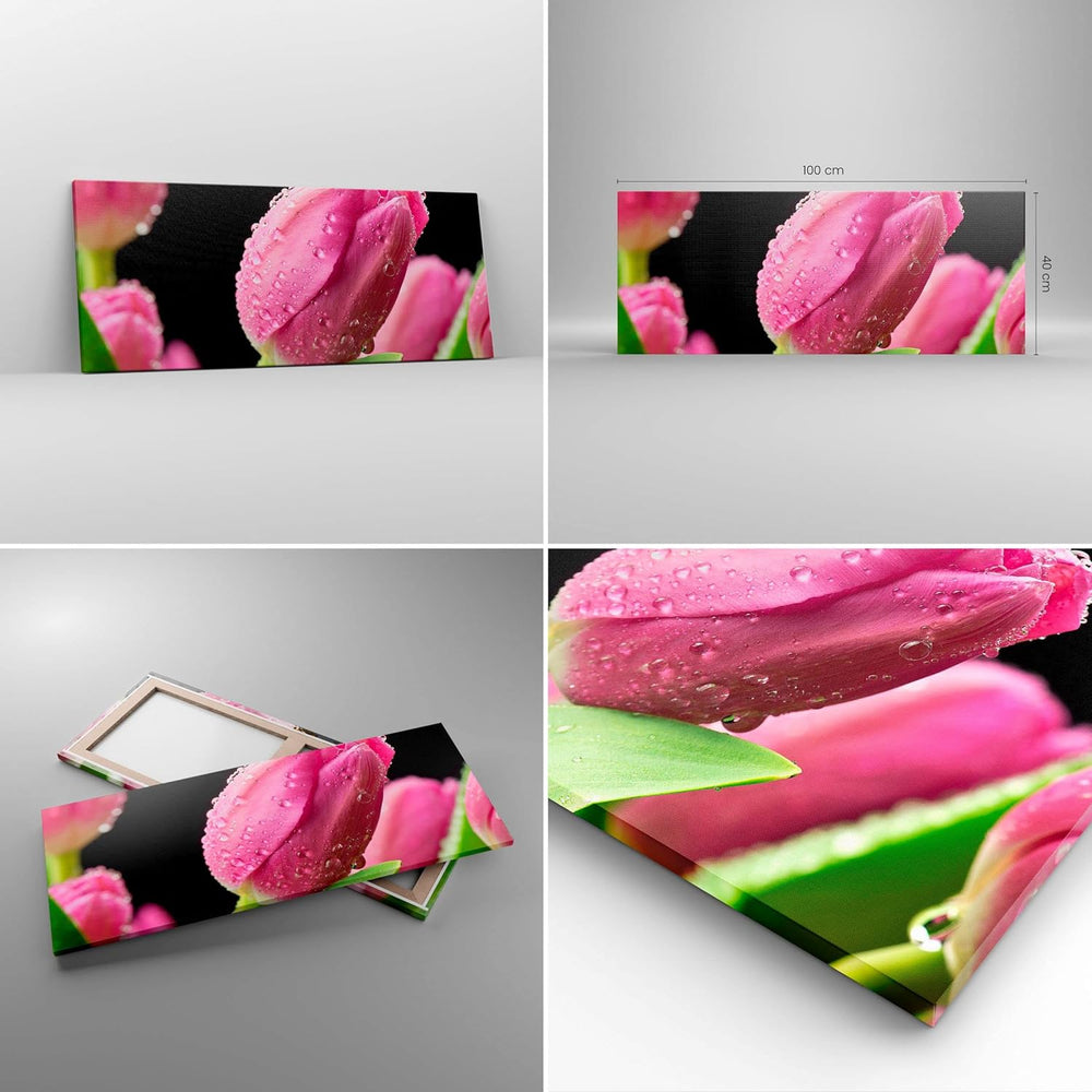 Panorama Bilder auf Leinwand 100x40cm Leinwandbild Tulpe Blumen Tau Gross Wanddeko Bild Schlafzimmer