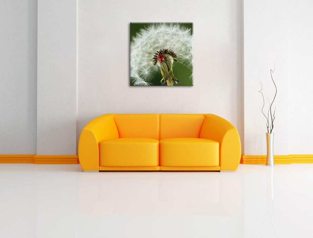 Marienkäfer auf Pusteblume, Format: 70x70 auf Leinwand, XXL riesige Bilder fertig gerahmt mit Keilra