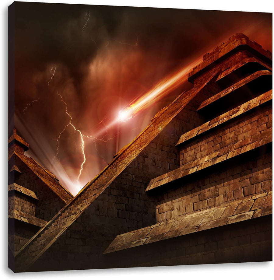 Maya Pyramide in Mexico, Format: 70x70 auf Leinwand, XXL riesige Bilder fertig gerahmt mit Keilrahme