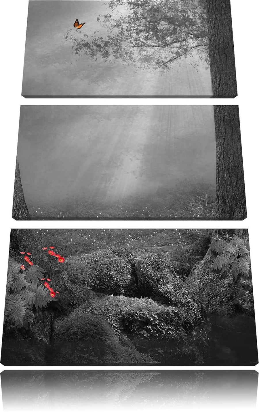 Märchenwald mit Schmetterling schwarz/weiss 3-Teiler Leinwandbild 120x80 Bild auf Leinwand, XXL ries
