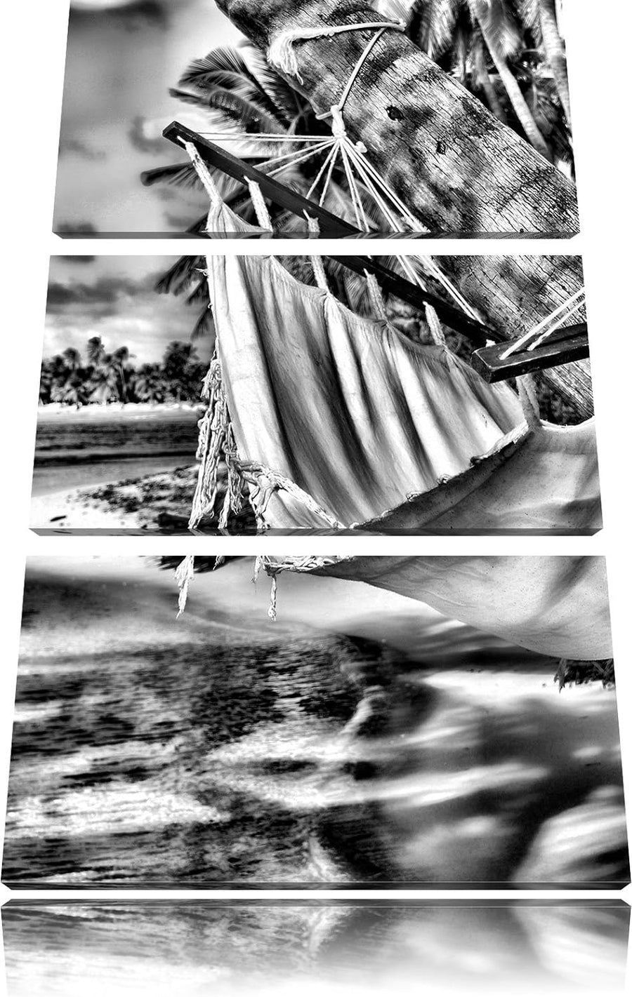 Malibu Beach Sunrise Water Sand schwarz/weiss 3-Teiler Leinwandbild 120x80 Bild auf Leinwand, XXL ri