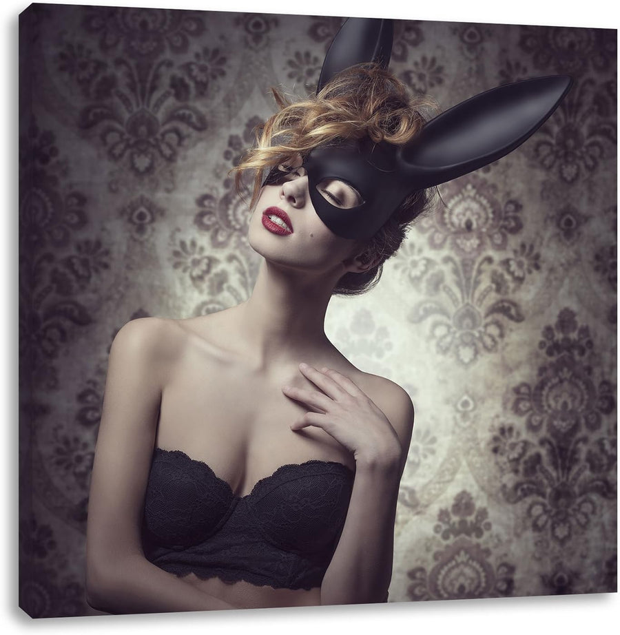 Maskierte attraktive Frau, Format: 70x70 auf Leinwand, XXL riesige Bilder fertig gerahmt mit Keilrah