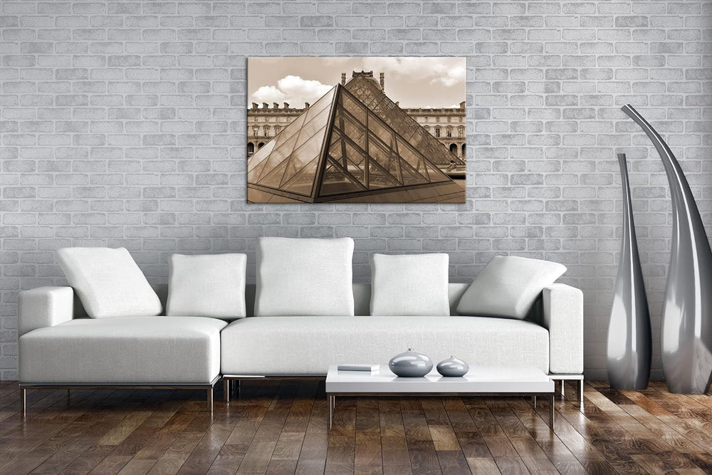 deyoli Jalousie Pyramide in Paris Effekt: Sepia Format: 80x60 als Leinwandbild, Motiv fertig gerahmt