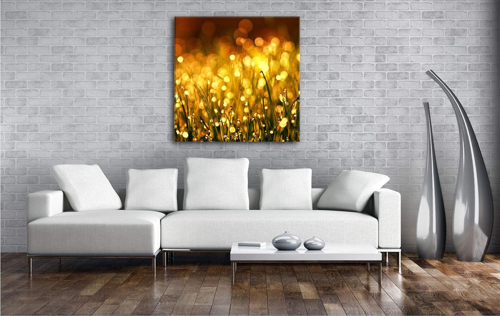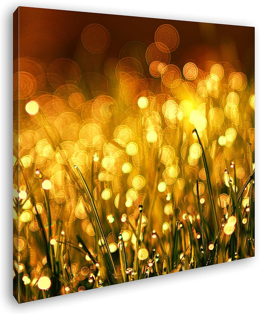 deyoli Im Gras schimmernder Sonnenuntergang Format: 70x70 als Leinwand, Motiv fertig gerahmt auf Ech