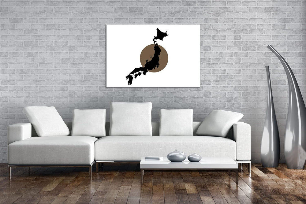 deyoli Japan Karte auf Japan Flagge Format: 80x60 Effekt: Sepia als Leinwandbild, Motiv fertig gerah