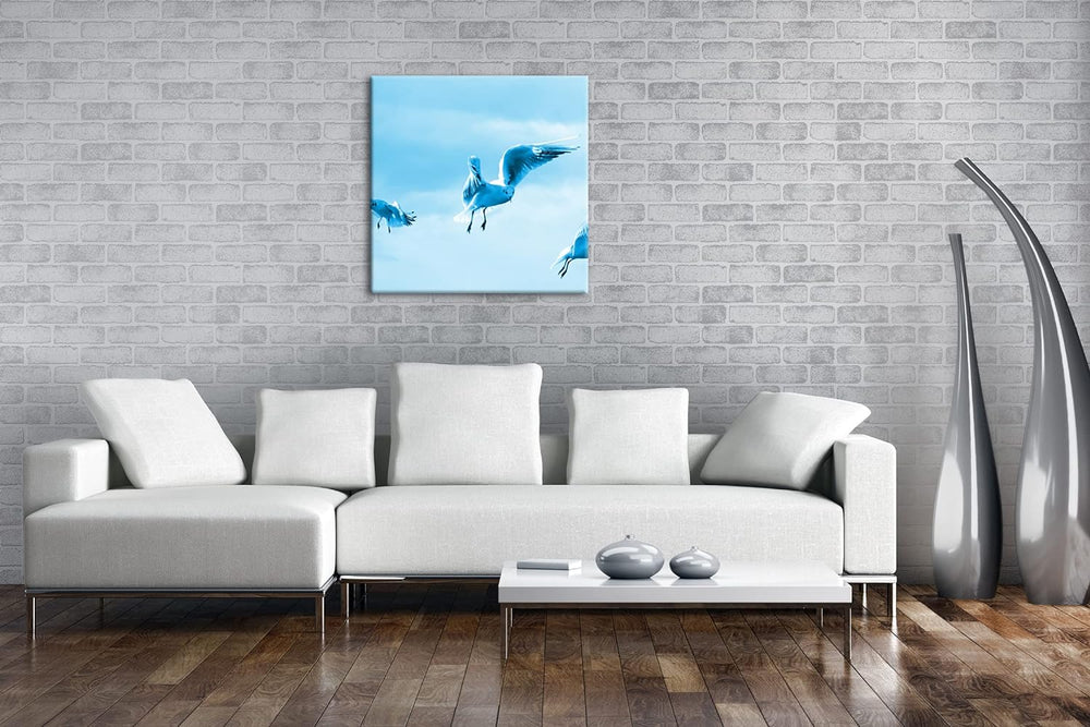 deyoli in Freiheit Fliegende Möwen Format: 70x70 Effekt: Monocrome Blau als Leinwandbild, Motiv fert