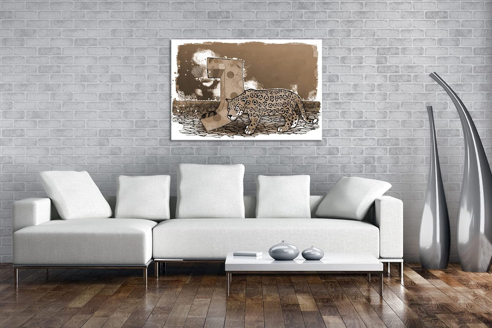 deyoli J wie Jaguar Format: 80x60 Effekt: Sepia als Leinwandbild, Motiv fertig gerahmt auf Echtholzr