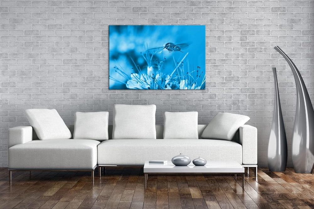 deyoli Insekt auf einer violetten Blume Format 80x60 Effekt: Monocrome Blau als Leinwandbild, Motiv