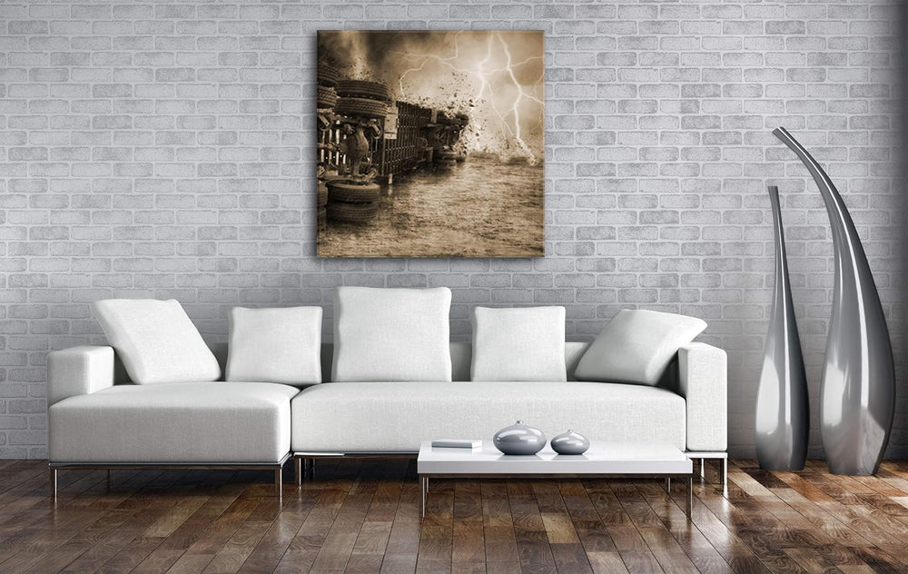 deyoli In einen Sturm geratener Truck Format: 70x70 Effekt: Sepia als Leinwandbild, Motiv fertig ger