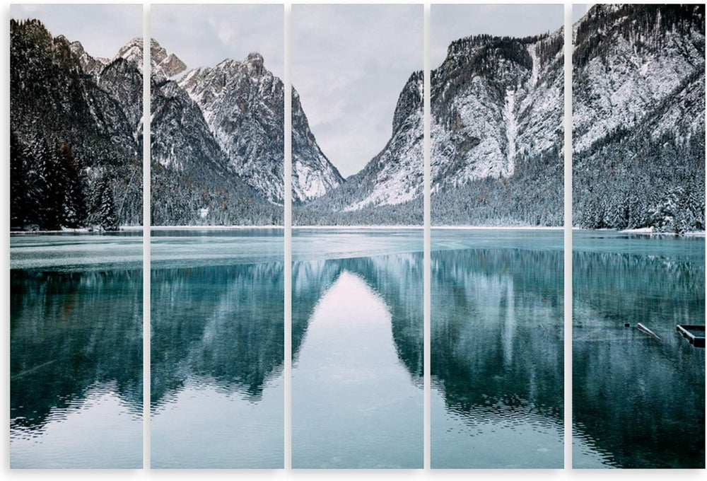 Feeby Wanddeko XXL Landschaft Leinwandbild 5 Teilig Winter Wald Bäume Weg bunt 100x70 cm Leinwandbil