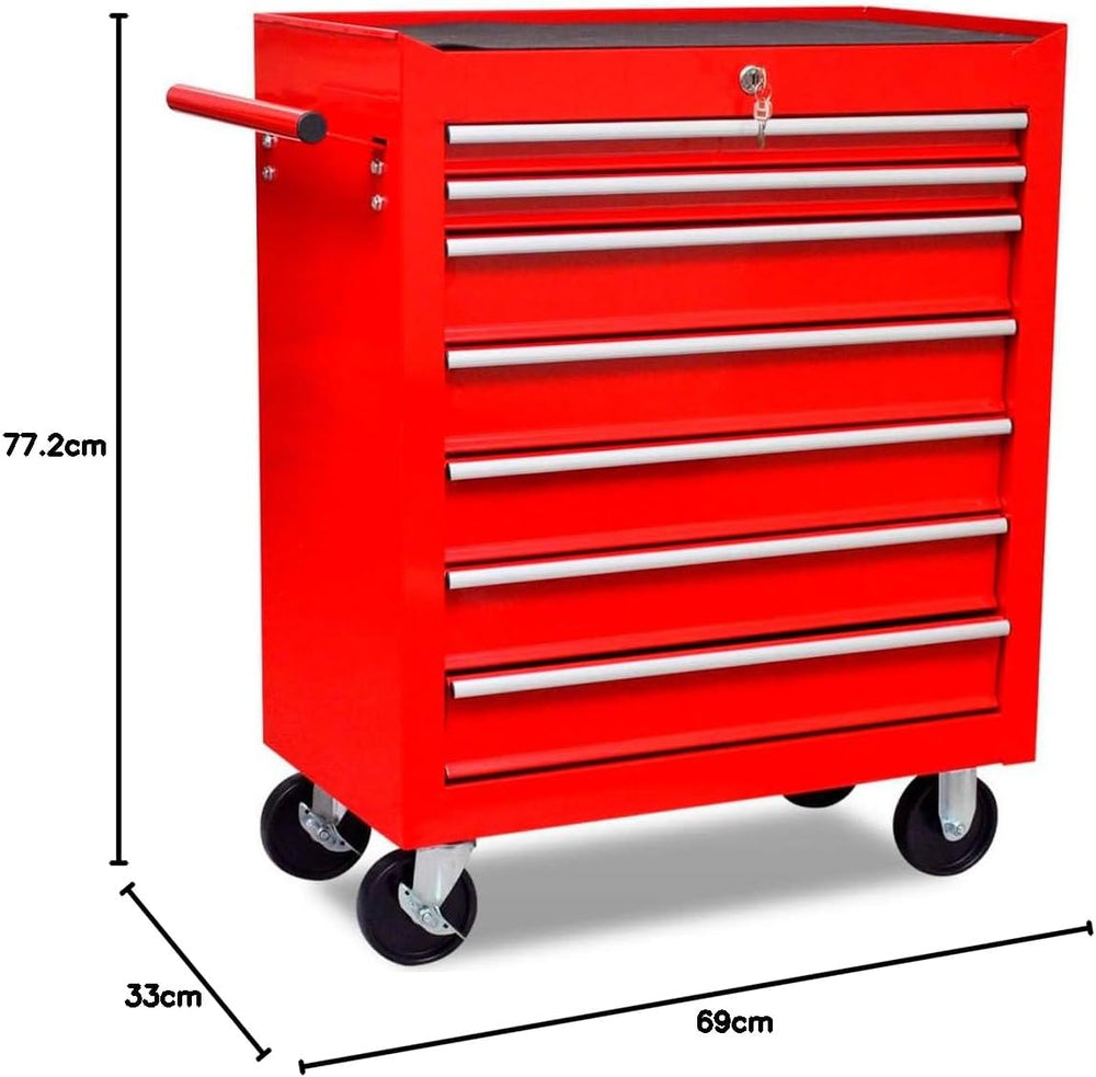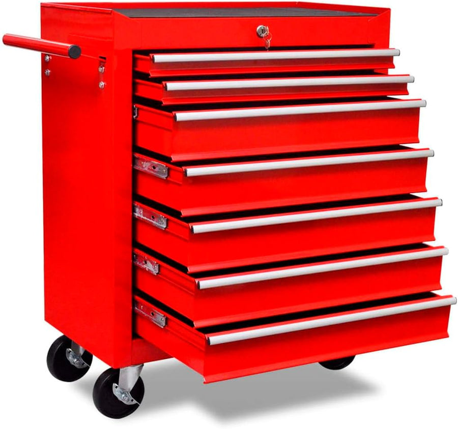 vidaXL Werkstattwagen 7 Fächer Werkzeug Rollwagen Werkzeugwagen Werkzeugkiste 7 Schubladen Rot, 7 Sc