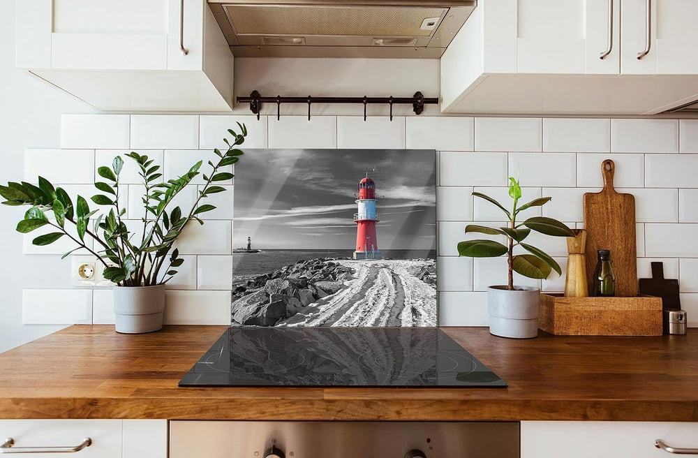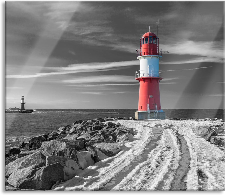 Molentürme in Warnemünde im Winter B&W Detail Herdabdeckplatte & Spritzschutz aus Echtglas | Für Her