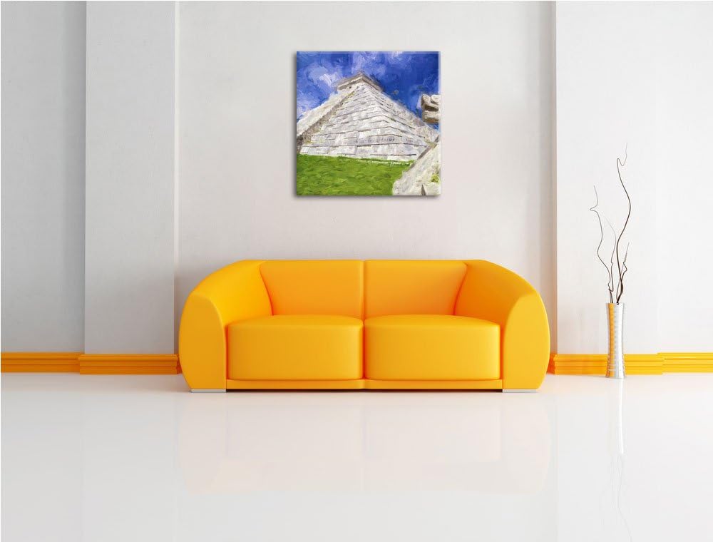 Maya Tempel in Mexiko, Format: 70x70 auf Leinwand, XXL riesige Bilder fertig gerahmt mit Keilrahmen,
