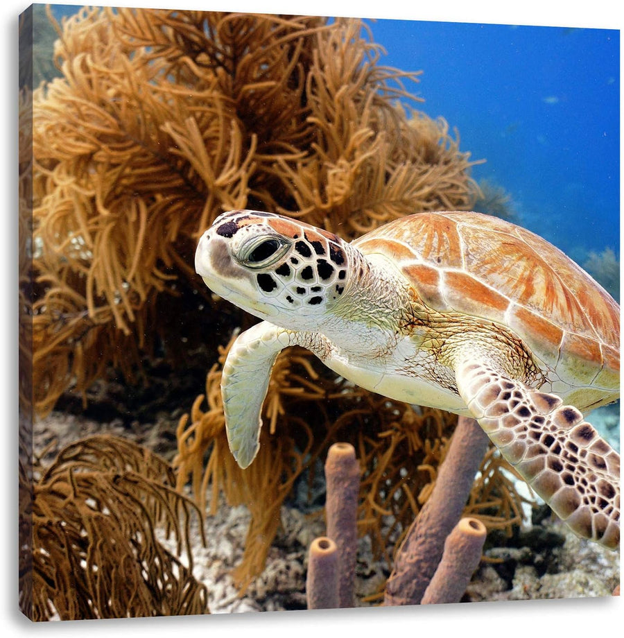 Meeresschildkröte, Format: 70x70 auf Leinwand, XXL riesige Bilder fertig gerahmt mit Keilrahmen, Kun