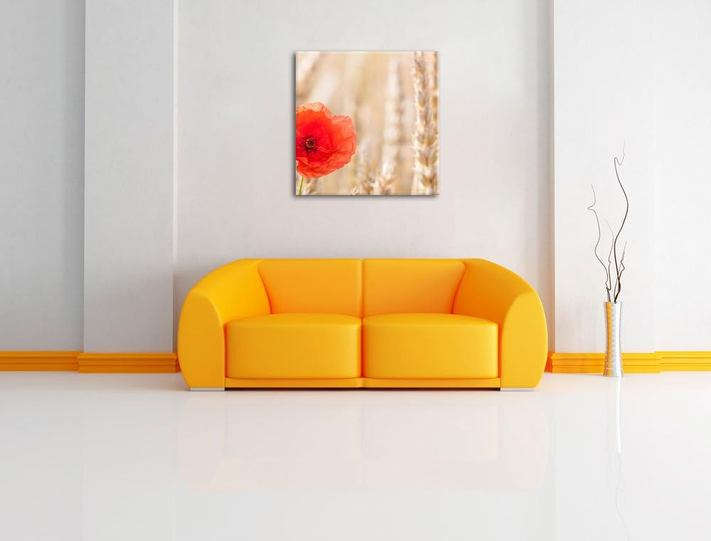 Mohnblume im Kornfeld, Format: 70x70 auf Leinwand, XXL riesige Bilder fertig gerahmt mit Keilrahmen,
