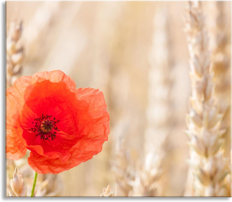 Mohnblume im Kornfeld Herdabdeckplatte & Spritzschutz aus Echtglas | Für Herd-Kochfelder | 60x52 cm