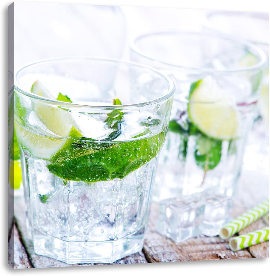 Mojito-Gläser mit Minze, Format: 70x70 auf Leinwand, XXL riesige Bilder fertig gerahmt mit Keilrahme