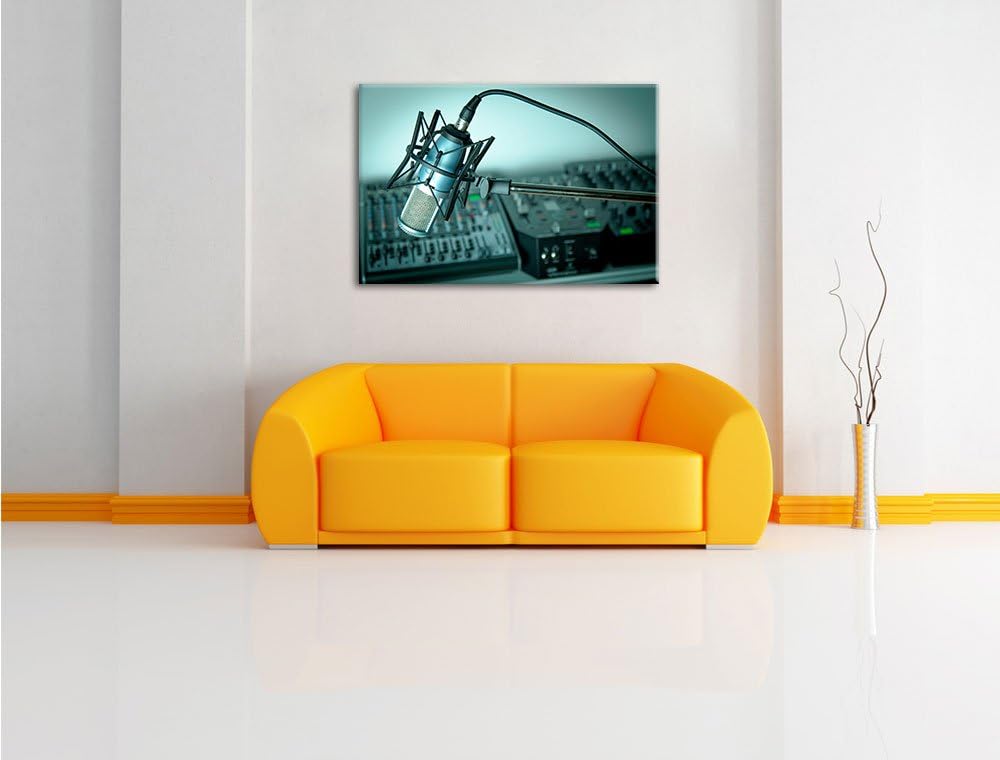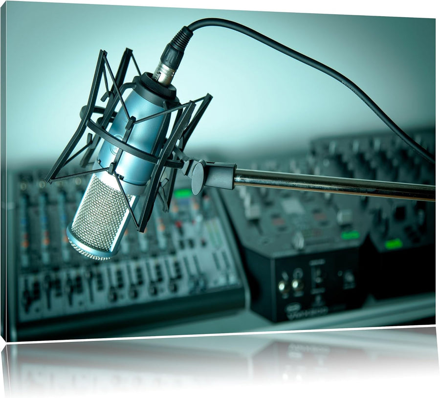 Mikrofon mit Musikanlagen, Format: 100x70 auf Leinwand, XXL riesige Bilder fertig gerahmt mit Keilra