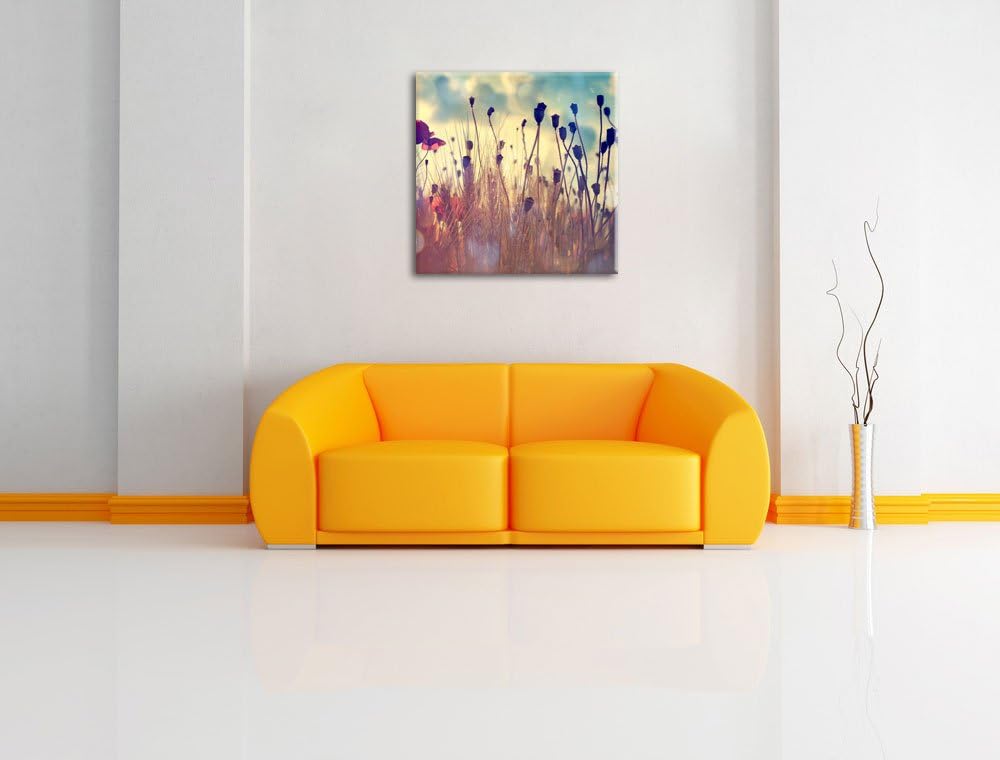 Mohn und Schmetterling, Format: 70x70 auf Leinwand, XXL riesige Bilder fertig gerahmt mit Keilrahmen
