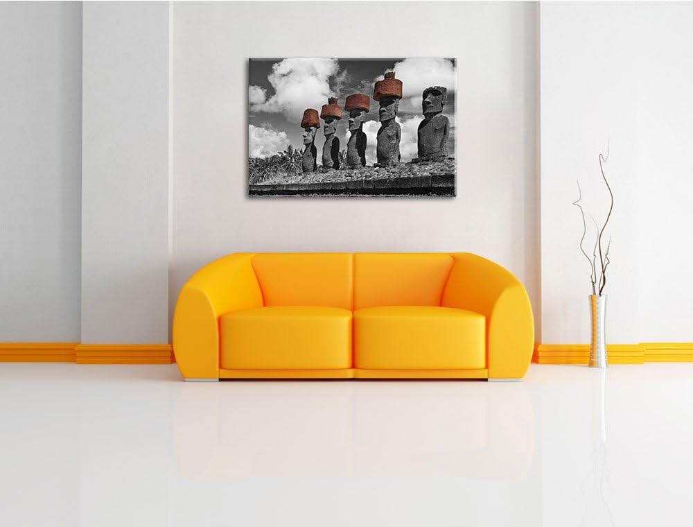 Moai Statuen auf den Osterinseln schwarz/weiss Format: 100x70 auf Leinwand, XXL riesige Bilder ferti