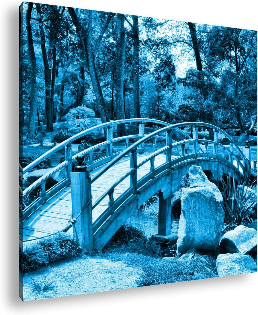 deyoli Japanischer Garten Format: 70x70 Effekt: Monocrome Blau als Leinwandbild, Motiv fertig gerahm