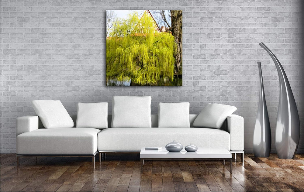deyoli Junge Trauerweide am Flussufer Format: 70x70 als Leinwandbild, Motiv fertig gerahmt auf Echth