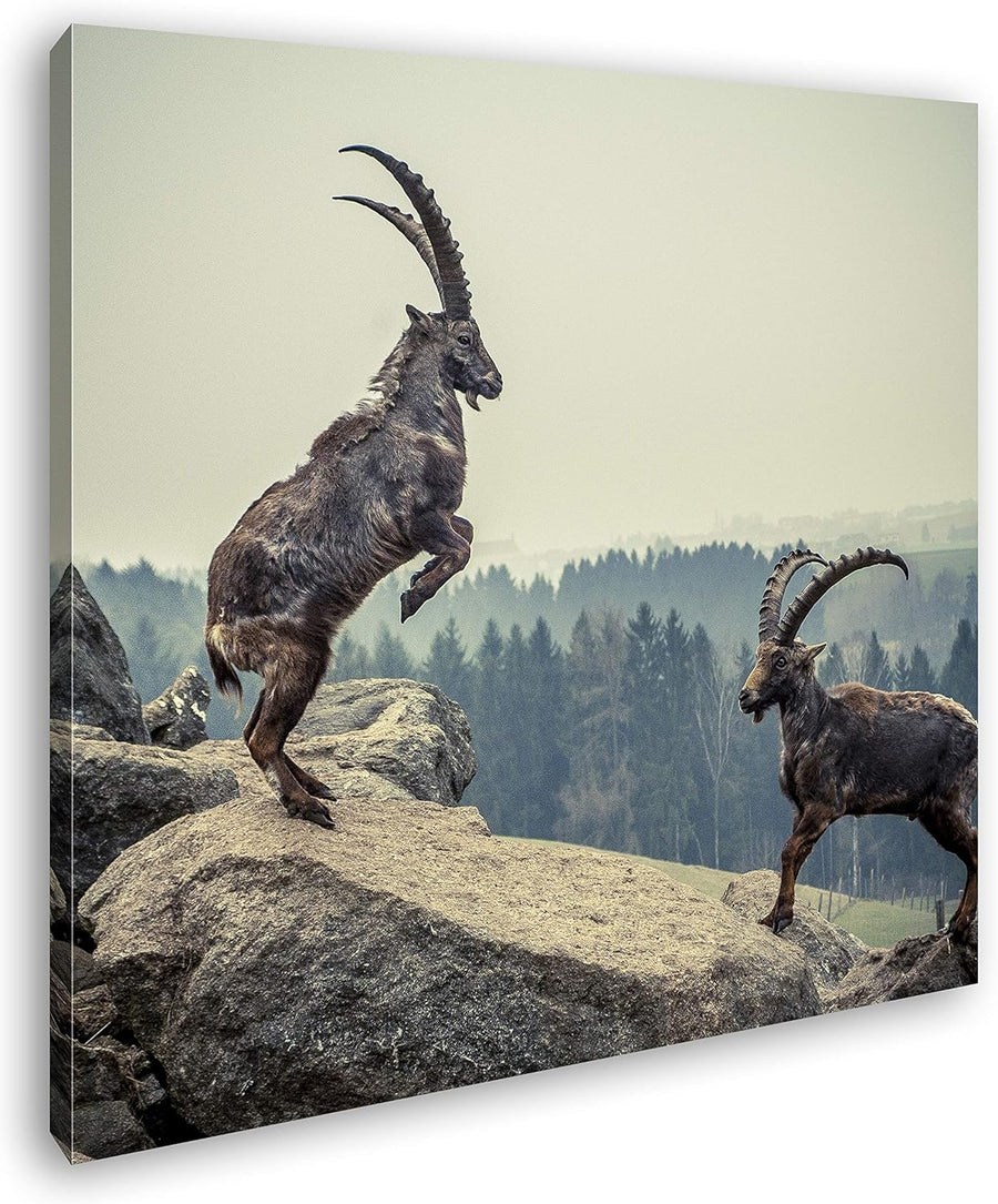 deyoli kämpfende Steinböcke Format: 70x70 als Leinwand, Motiv fertig gerahmt auf Echtholzrahmen, Hoc