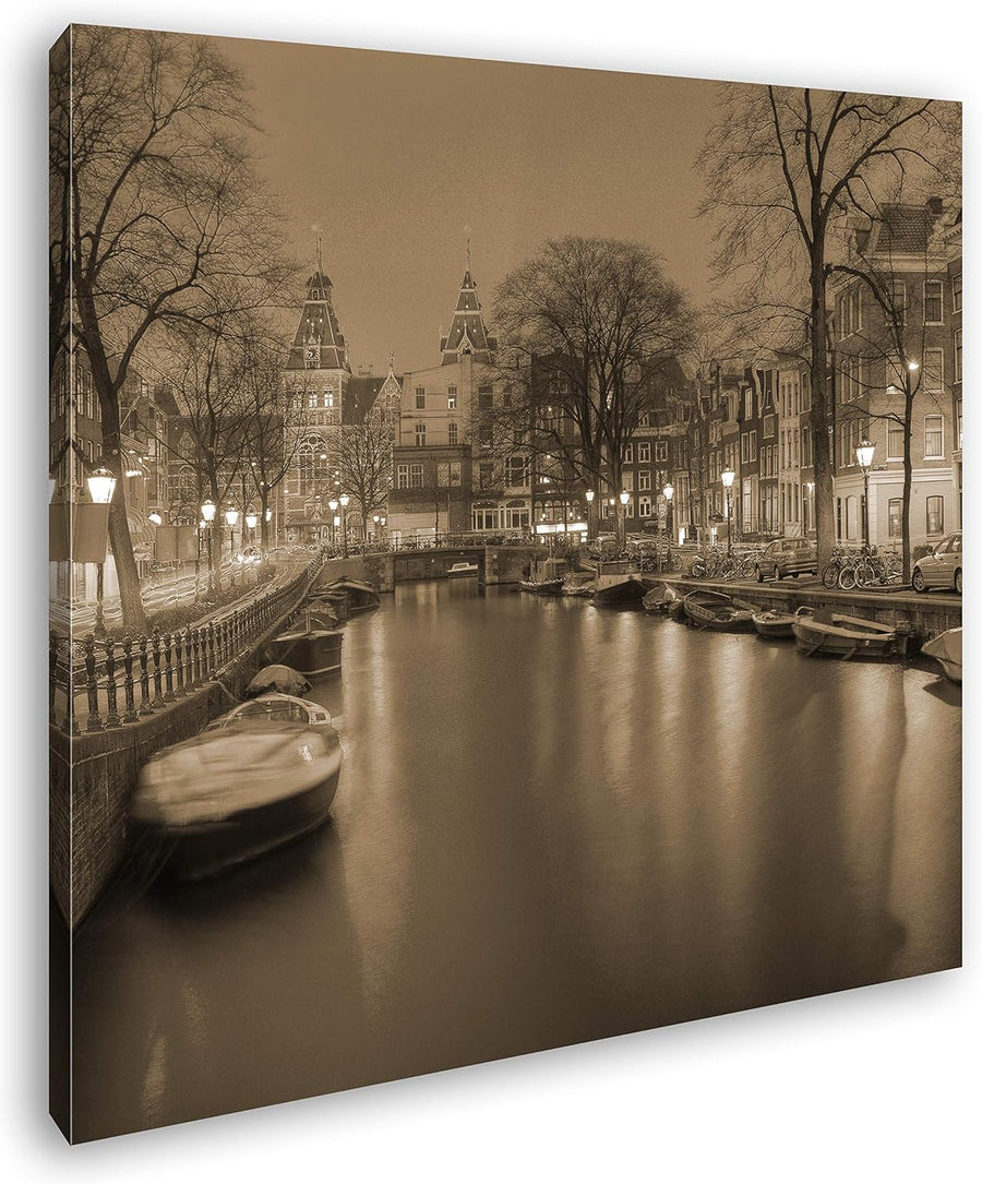deyoli Kanal in Amsterdam bei Nacht Format: 60x40 Effekt: Sepia als Leinwandbild, Motiv fertig gerah