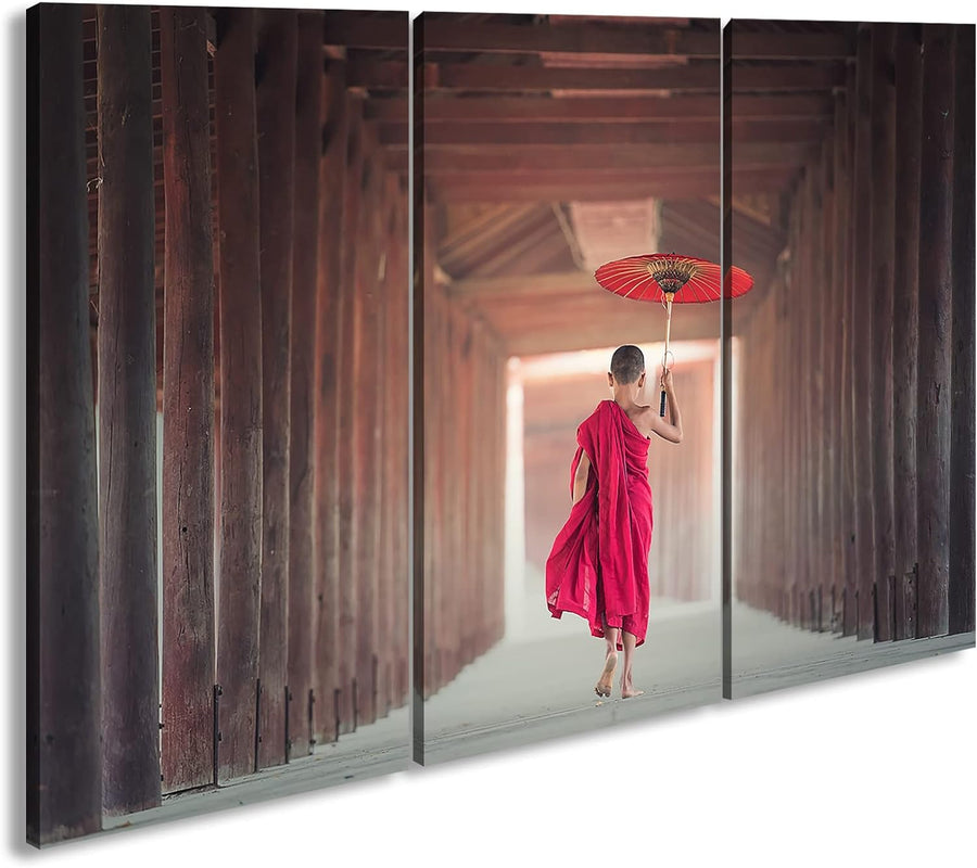 deyoli Junger Mönch im roten Gewand Format: 3-teilig 120x80 als Leinwand, Motiv fertig gerahmt auf E