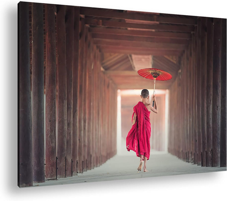 deyoli Junger Mönch im roten Gewand Format: 100x70 als Leinwand, Motiv fertig gerahmt auf Echtholzra