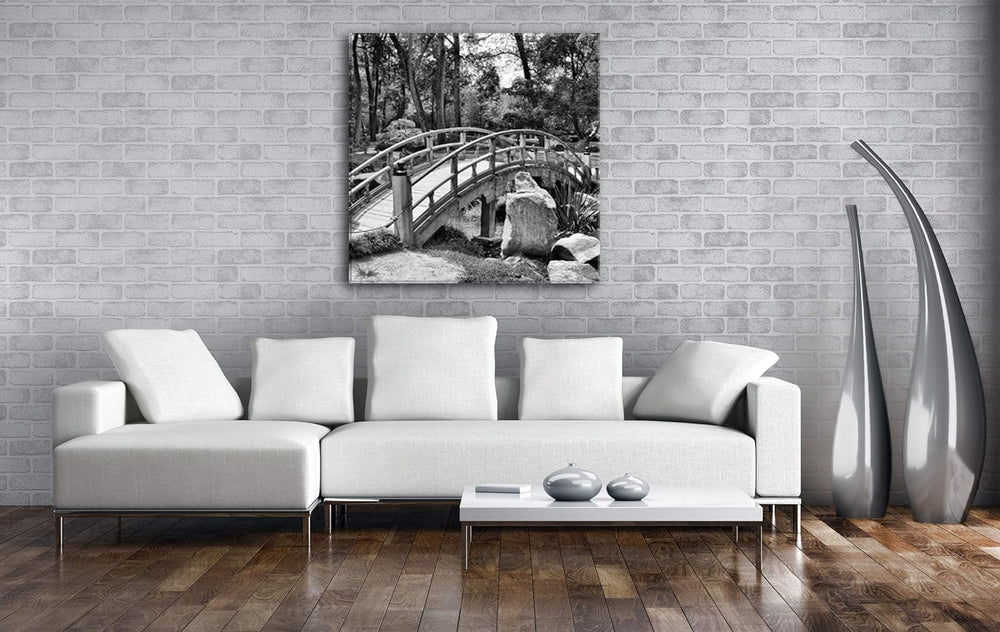deyoli Japanischer Garten Format: 70x70 Effekt: Schwarz&Weiss als Leinwandbild, Motiv fertig gerahmt