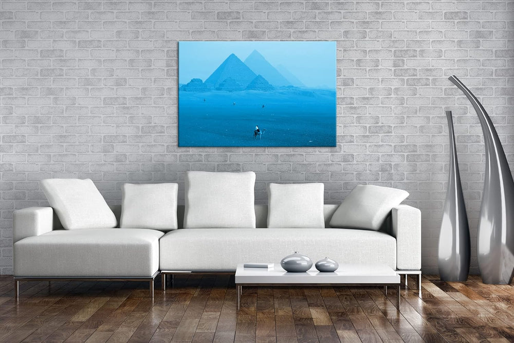 deyoli Kamele vor den Ägyptischen Pyramiden Format: 80x60 Effekt: Monocrome Blau als Leinwandbild, M