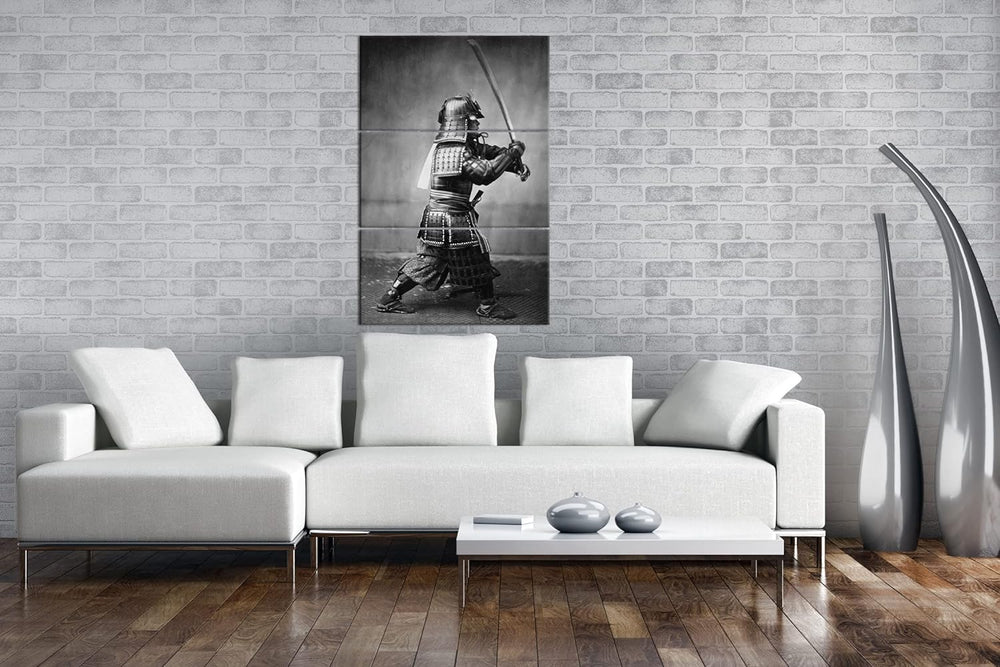 deyoli kampfbereiter Samurai-Krieger Format: 3Teilig als Leinwandbild, Motiv fertig gerahmt auf Echt