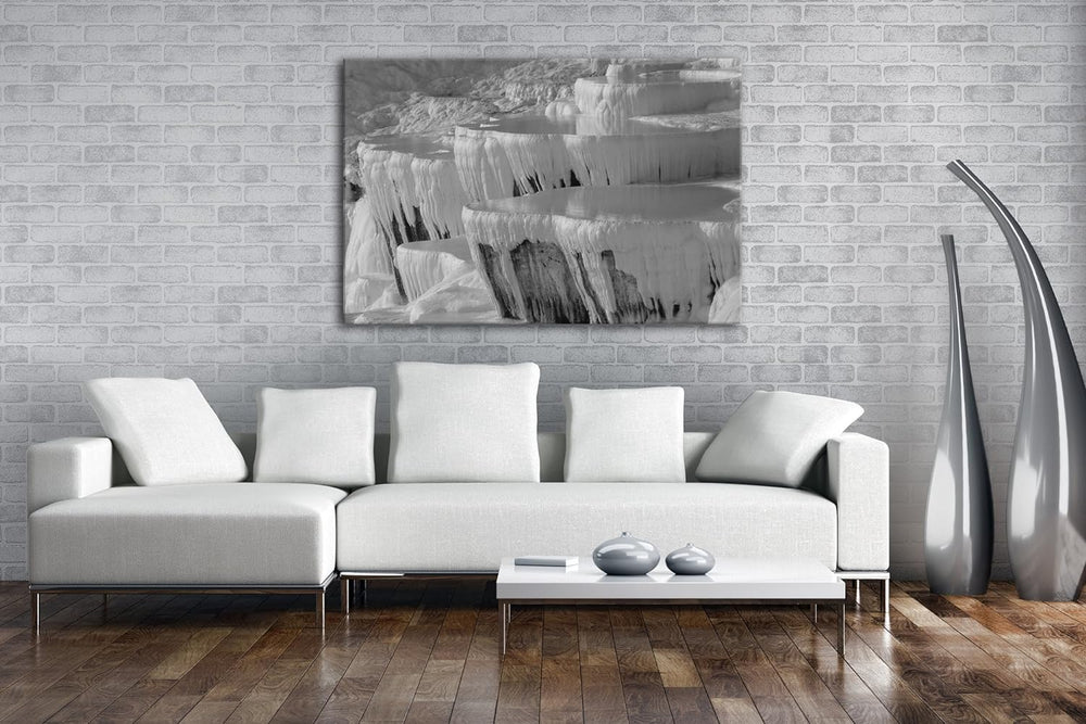 deyoli Kalksinterterrassen in Pamukkale Effekt: Schwarz/Weiss im Format: 100x70 als Leinwandbild, Mo