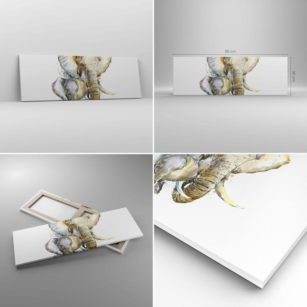 Panorama Bilder auf Leinwand Elefant spass bunt tier Leinwandbild 90x30cm Wandbilder Dekoration Wohn