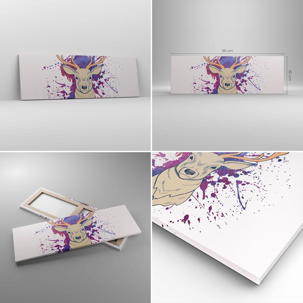 Panorama Bilder auf Leinwand Hirsch Abstraktion Leinwandbild 90x30cm Wandbilder Dekoration Wohnzimme