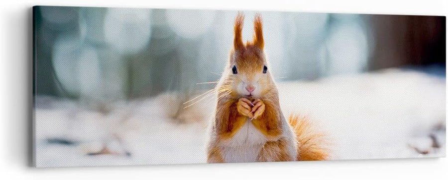 Panorama Bilder auf Leinwand Eichhörnchen Winter Schnee Essen Leinwandbild 90x30cm Wandbilder Dekora