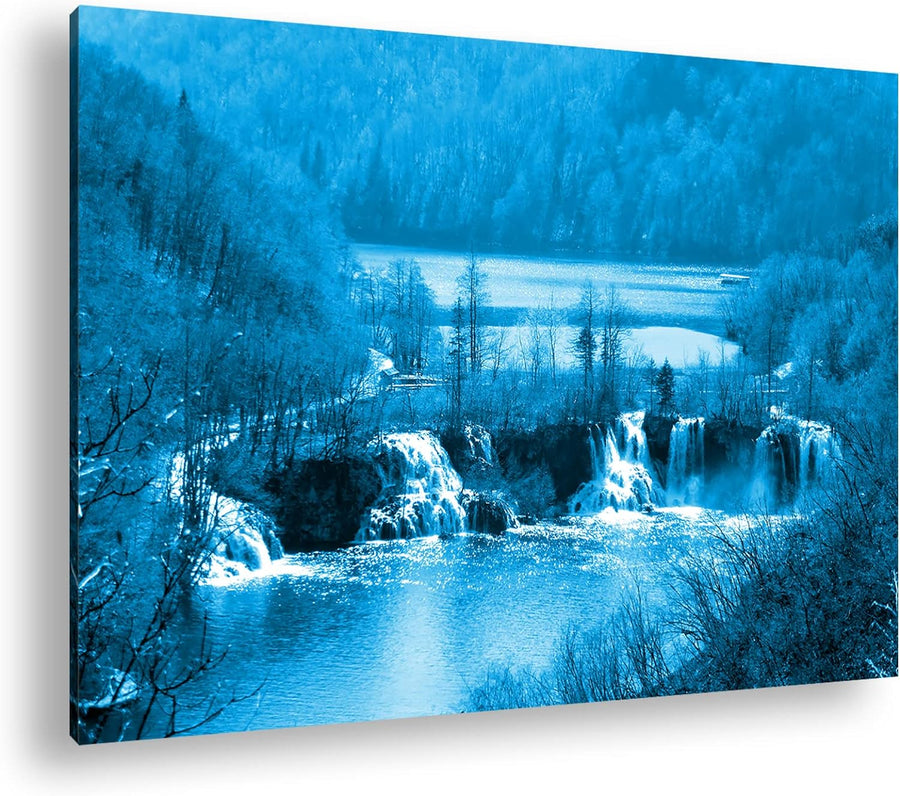 deyoli Kaskaden in Kroatien Format 80x60 Effekt: Monocrome Blau als Leinwandbild, Motiv fertig gerah