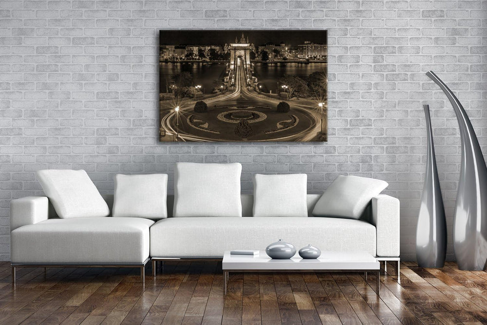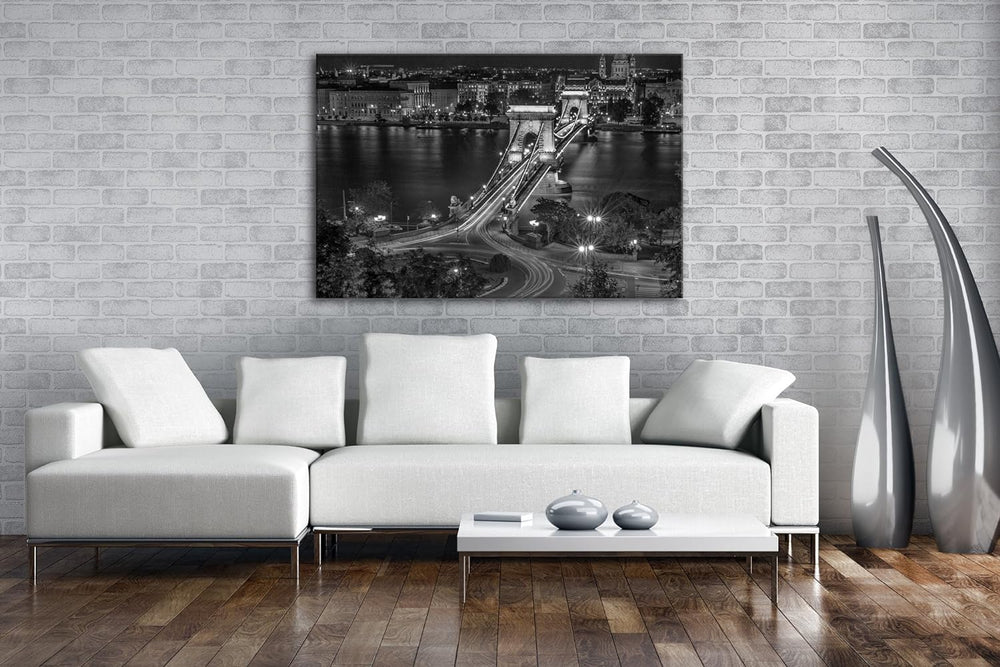 deyoli Kettenbrücke in Budapest bei Nacht Effekt: Schwarz/Weiss Format: 80x60 als Leinwand, Motiv fe